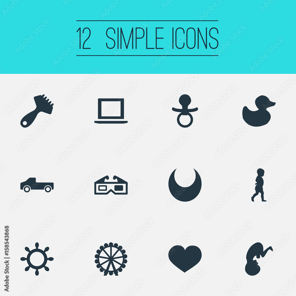 Vector Illustration Set Of Simple Kid Icons. Elements Board